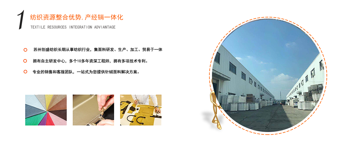 蘇州創盛紡織有限公司坐落于江蘇省吳江市盛澤鎮圣塘村,自2004年成立以來,一直致力于中高檔功能型環保梭織面料的研發與經營,創盛紡織在專注幾十年面料經營中,不斷的完善管理,嚴格的把控品質,精準的創新產品,從而讓每一款面料滿足不同客戶的個性化需求,產品廣泛適用于:嬰兒用品、戶外旅行用品、運動休閑用品、箱包手袋、家庭收納用品等領域。